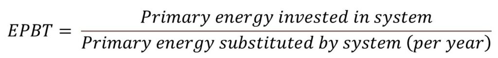Another consideration is EPBT, the amount of time it takes a renewable energy system to produce the same amount of (substituted primary) energy which was used in its own production, installation, and maintenance (invested primary energy).